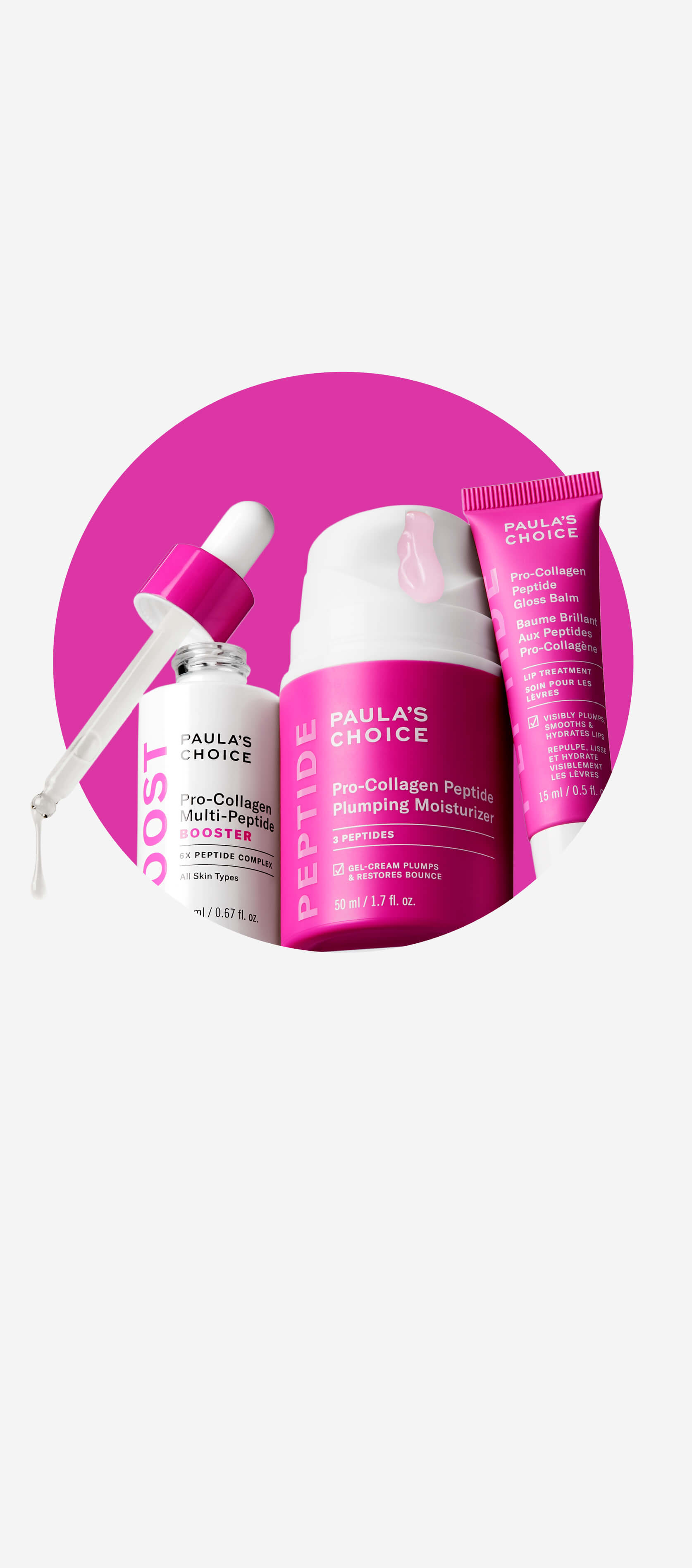 The Paula’s Choice Pro-Collagen Peptide Collection is now part of the PLUMP + FIRM collection. While the name has changed, the peptide-powered formulas remain the same. You can still find your favourite products within the PLUMP + FIRM range, now organised to highlight their focus on hydration, firmness and visibly smoother-looking skin.